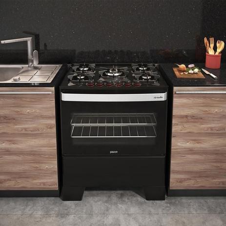 Fogão de Piso Mueller 5 Bocas Piacere Vetro, Mesa de Vidro Temperado, Acendimento Automático