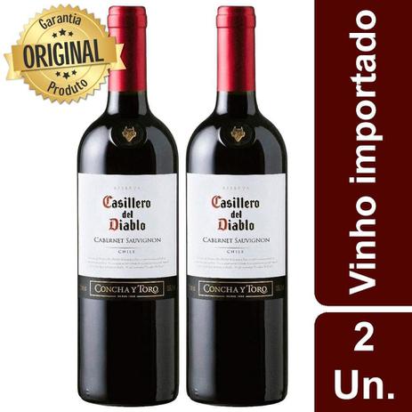 Kit 2 Vinho Importado Chileno Casillero Del Diablo Cabernet Sauvignon Tinto 750ML