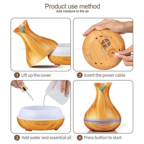 Umidifica e purifica o ar, além de soltar um leve aroma, com capacidade máxima de 400ml, você pode colocar gotas de óleo de aroma na água ou perfume do seu agradado, apenas algumas gotas são suficientes..