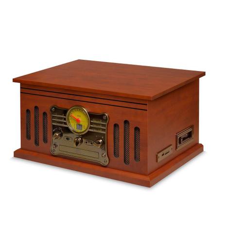 Com a versatilidade da vitrola Raveo Stadio, você pode aproveitar o melhor das suas músicas da forma que preferir: Toca discos, Rádio FM, CD, CD-R/RW, USB, SD Card, Saída de áudio RCA, entrada auxiliar e conexão Bluetooth. A tecnologia digital do Toca Discos Raveo Stadio permite você escutar as músicas arquivadas em seu smartphone, tablet ou computador com muita facilidade. Basta um clique para parear os aparelhos e a Stadio esta pronta para reprodução.